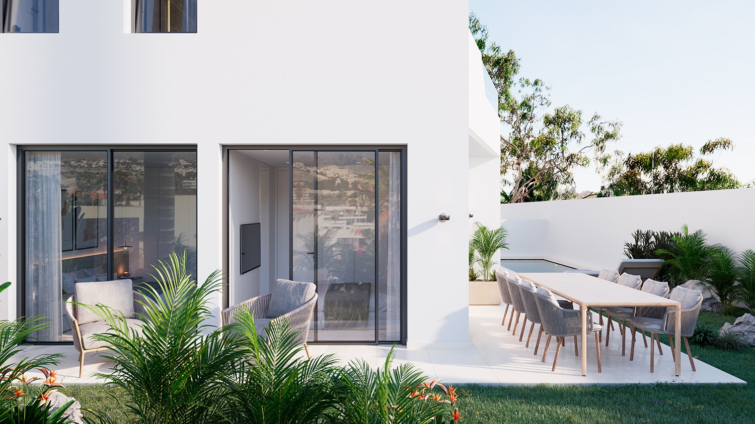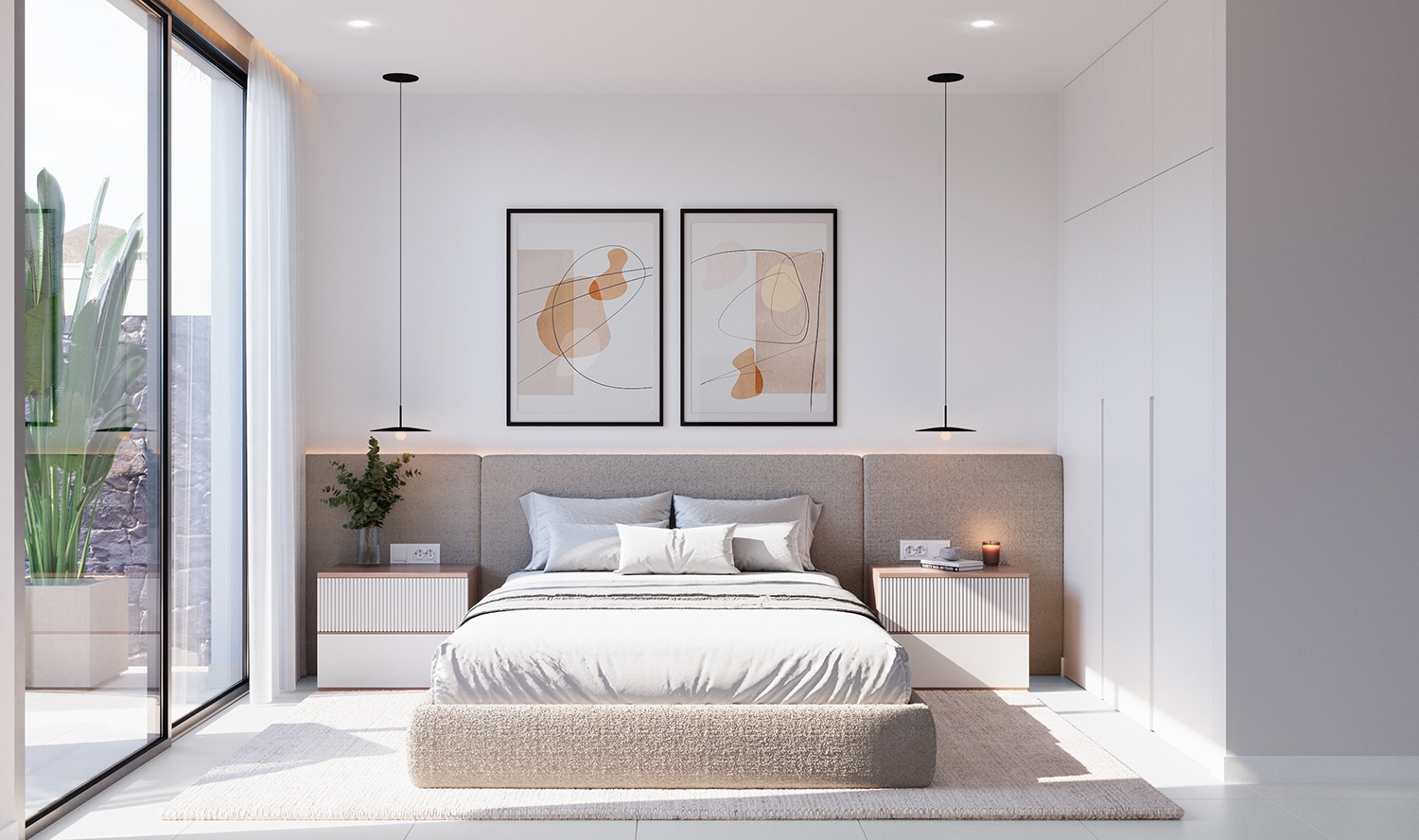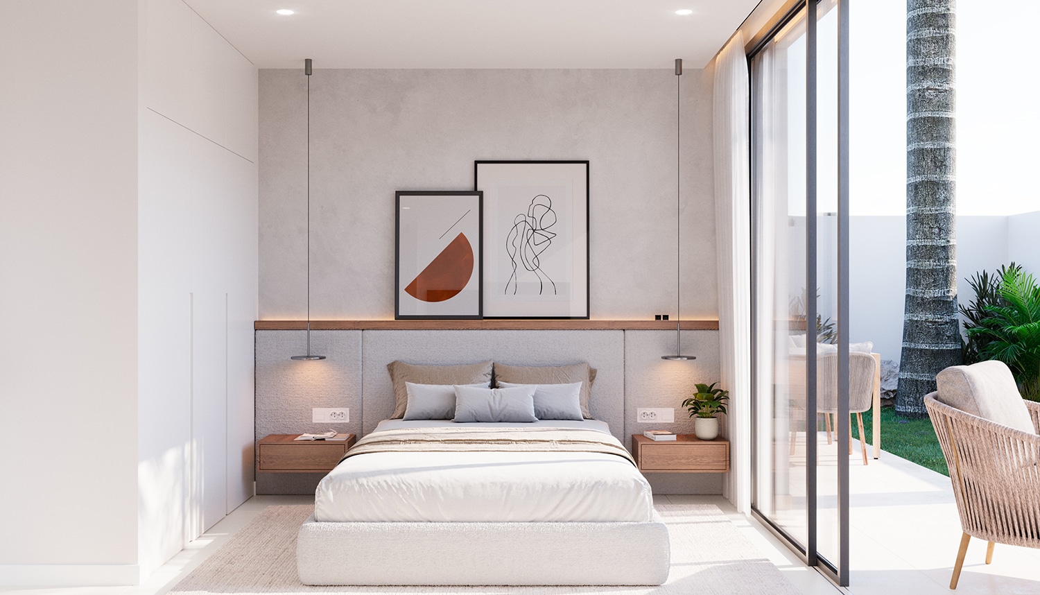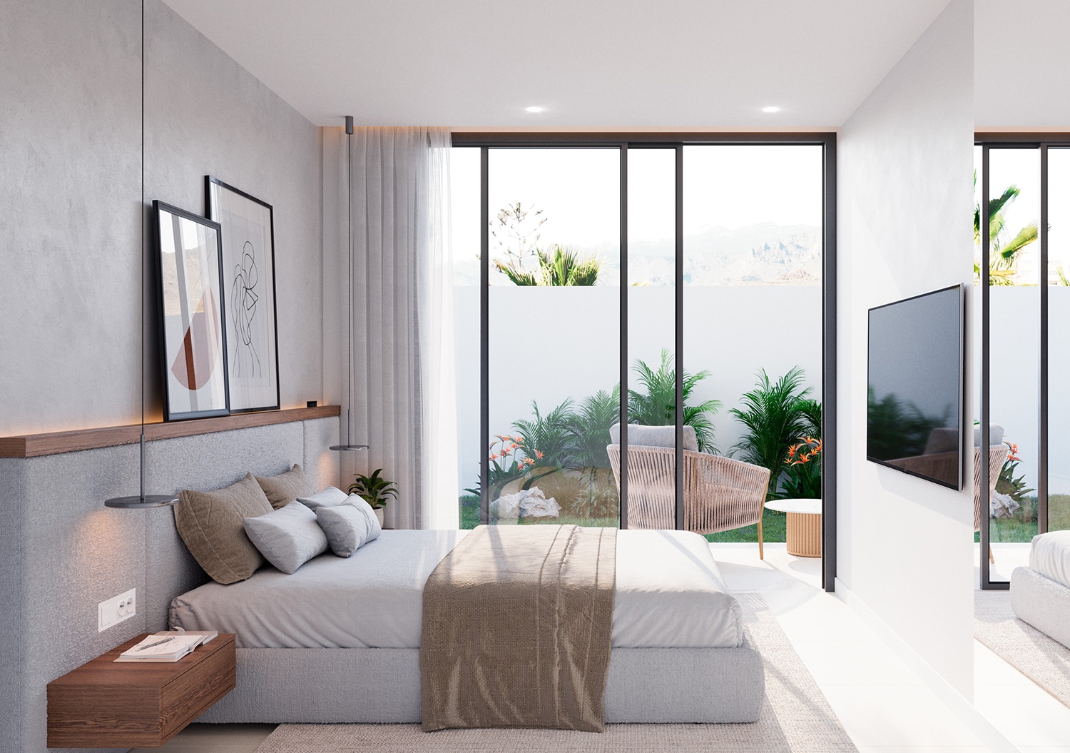 En el interior, el diseño contemporáneo y los materiales nobles crean una atmósfera serena y sofisticada. La cocina abierta y el salón se extienden hacia el jardín a través de grandes ventanales, generando una fluidez total entre interior y exterior. Los dormitorios invitan al descanso, y el baño principal con acabados nobles que aportan un toque de hotel boutique a la vida diaria.