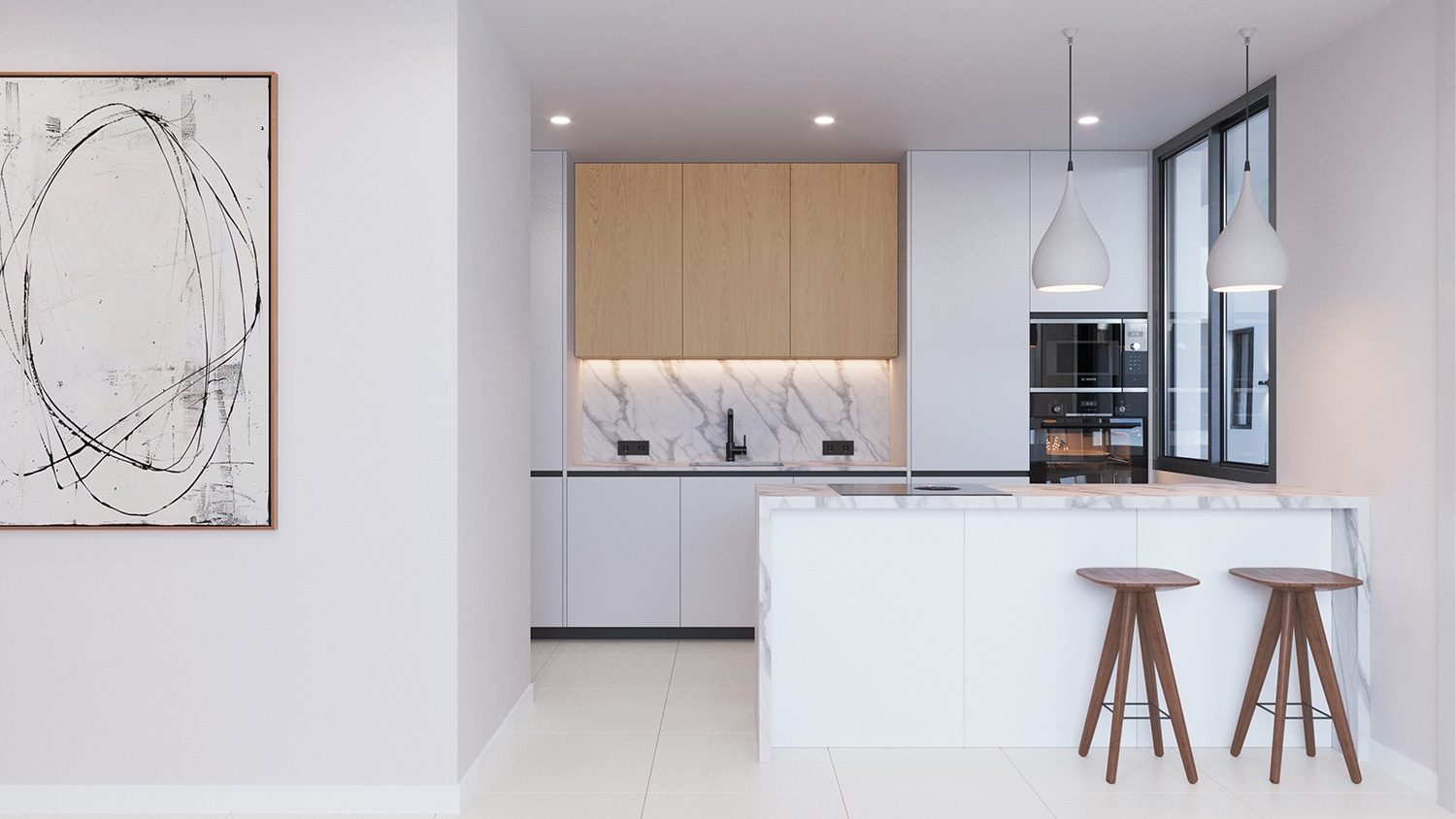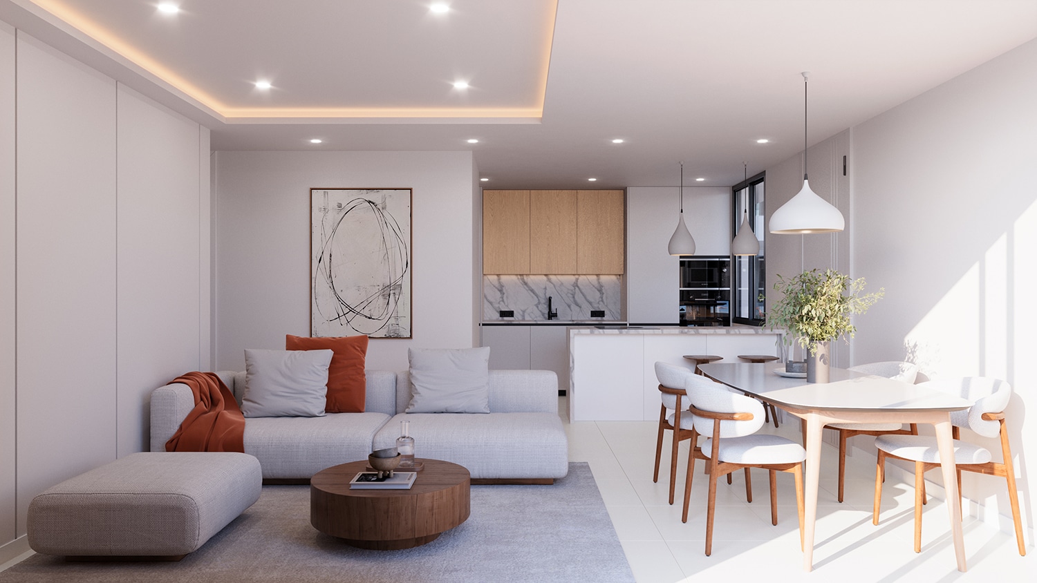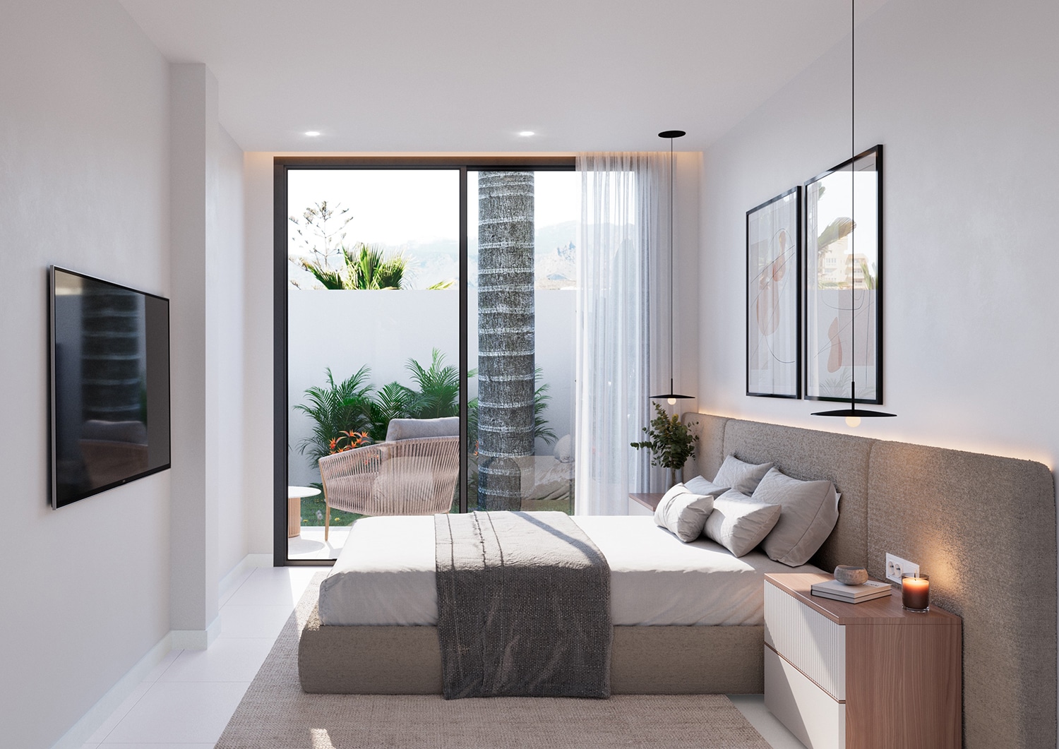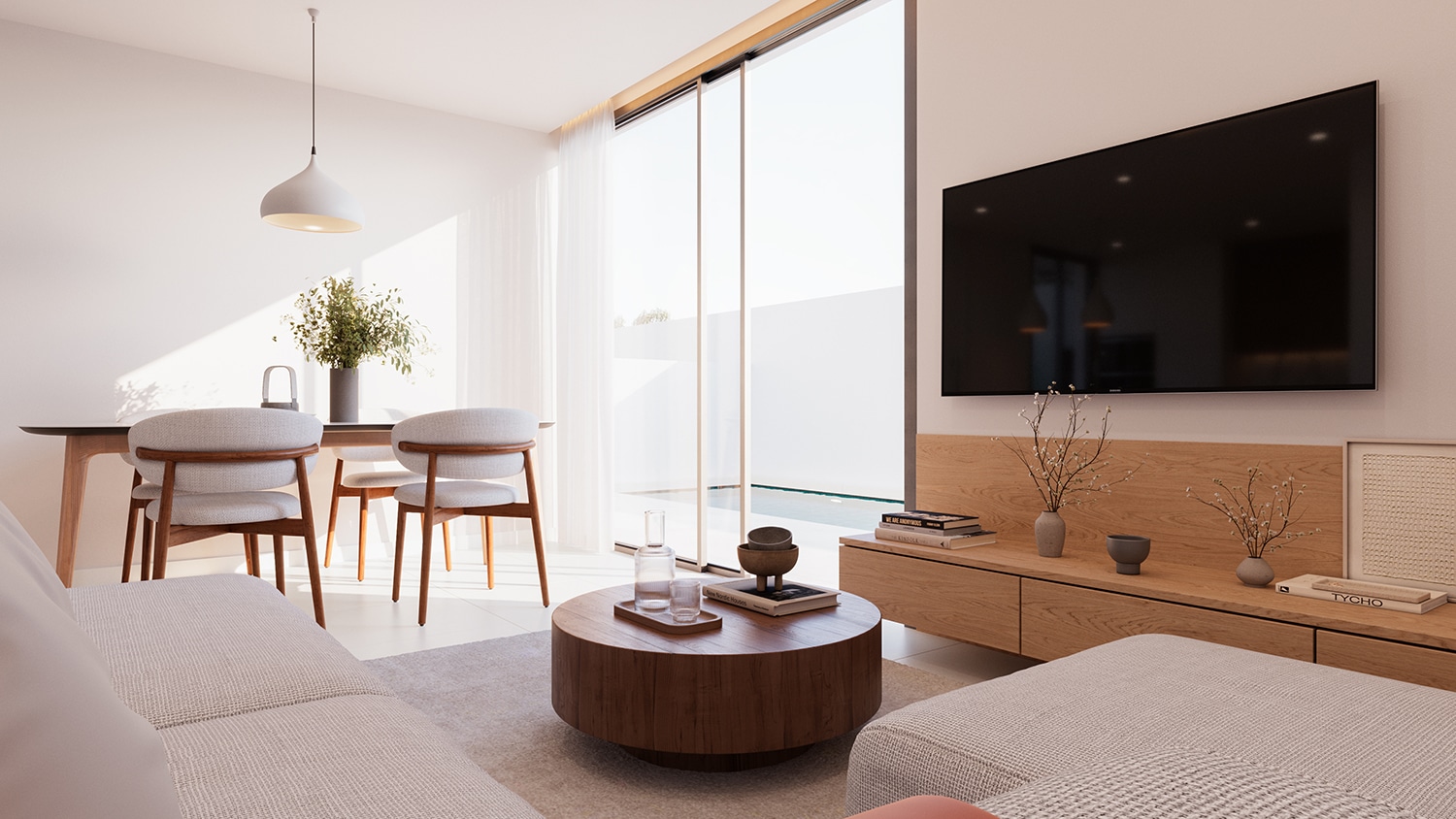En el interior, el diseño contemporáneo y los materiales nobles crean una atmósfera serena y sofisticada. La cocina abierta y el salón se extienden hacia el jardín a través de grandes ventanales, generando una fluidez total entre interior y exterior. Los dormitorios invitan al descanso, y el baño principal con acabados nobles que aportan un toque de hotel boutique a la vida diaria.