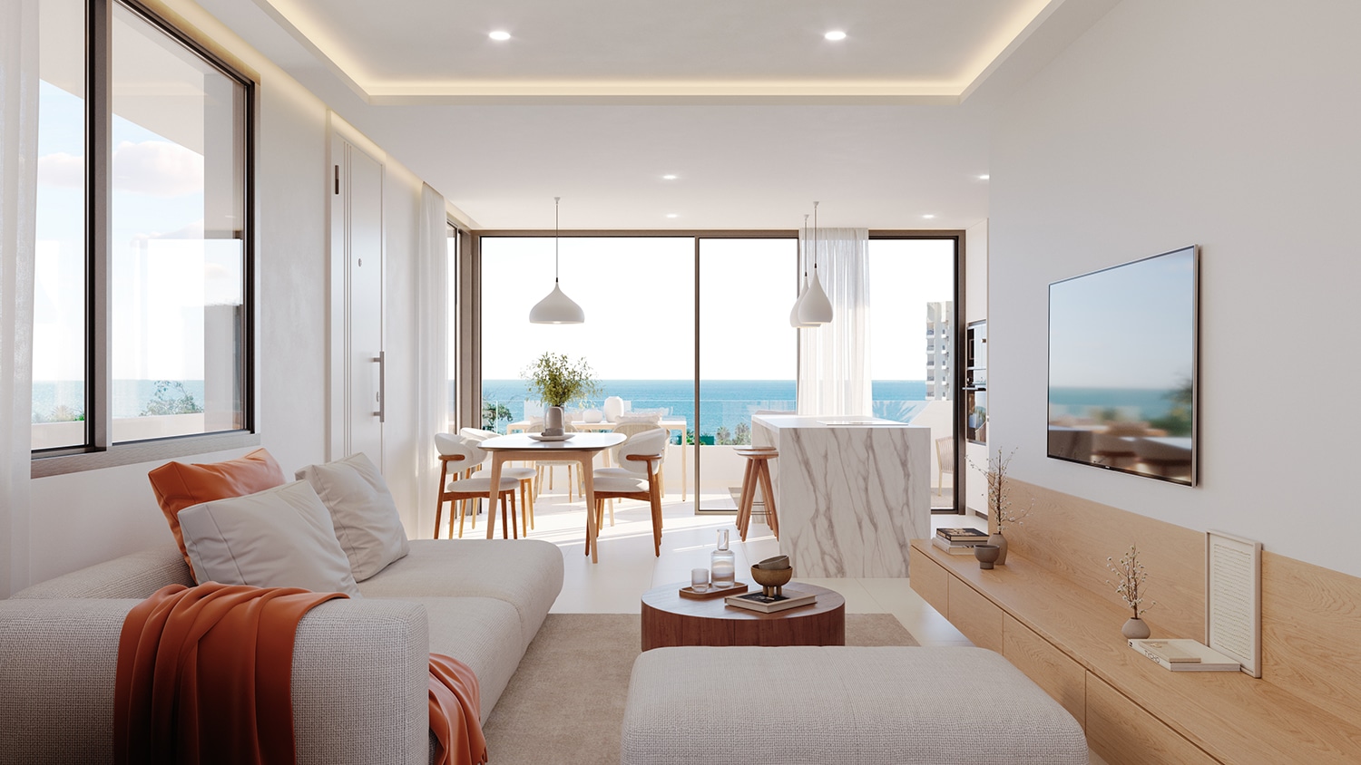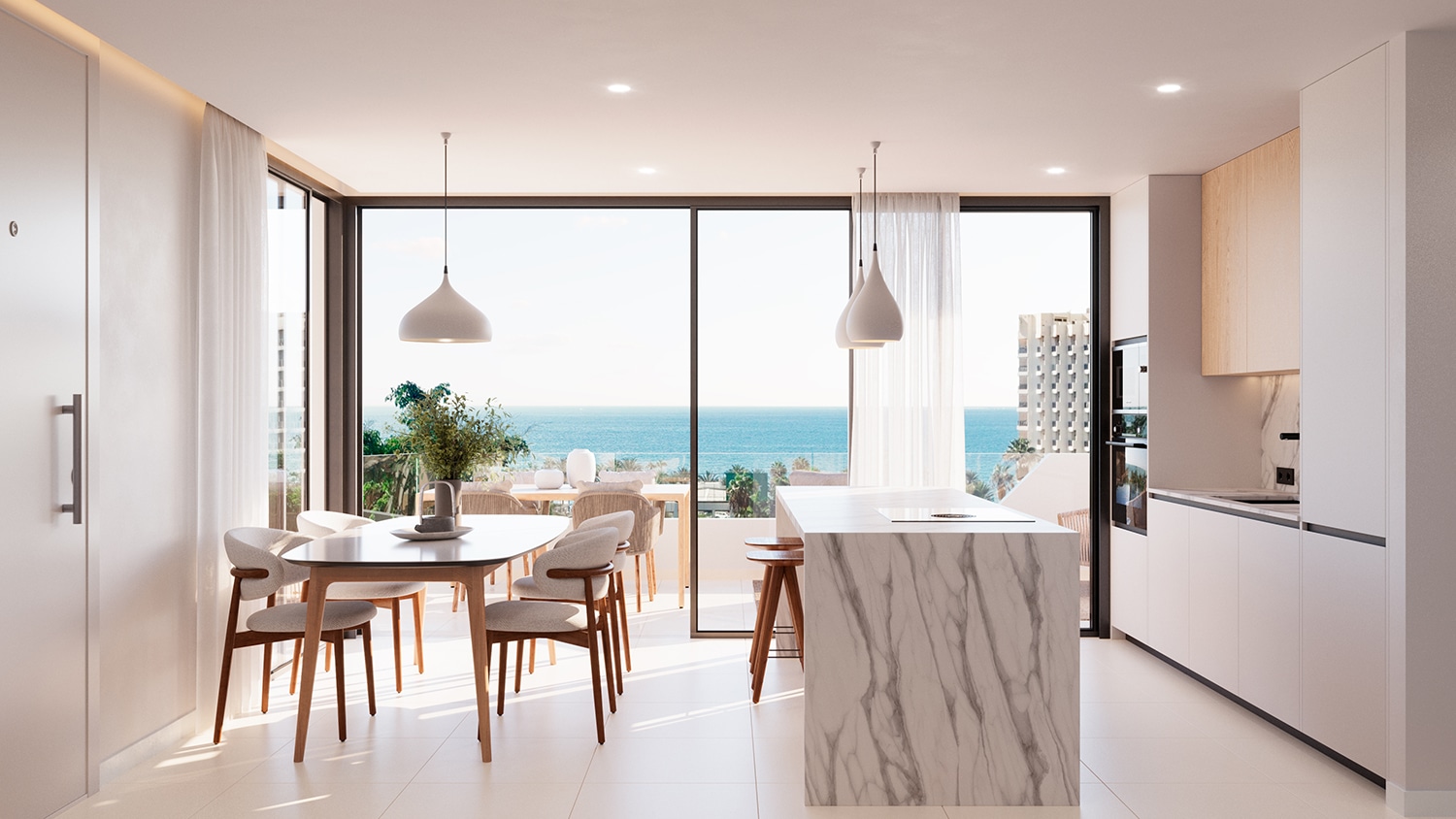 Este apartamento en planta primera es una invitación a vivir con el mar como horizonte. Desde su amplia terraza privada, el océano Atlántico se convierte en parte del día a día, aportando luz, calma y una sensación permanente de amplitud.
