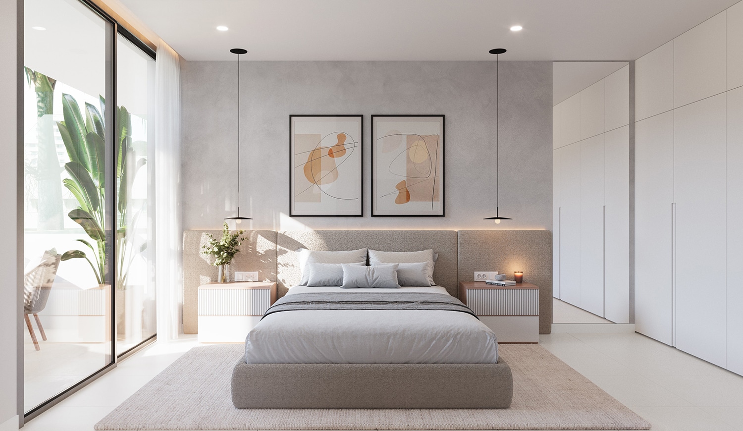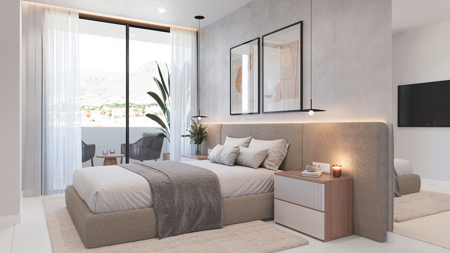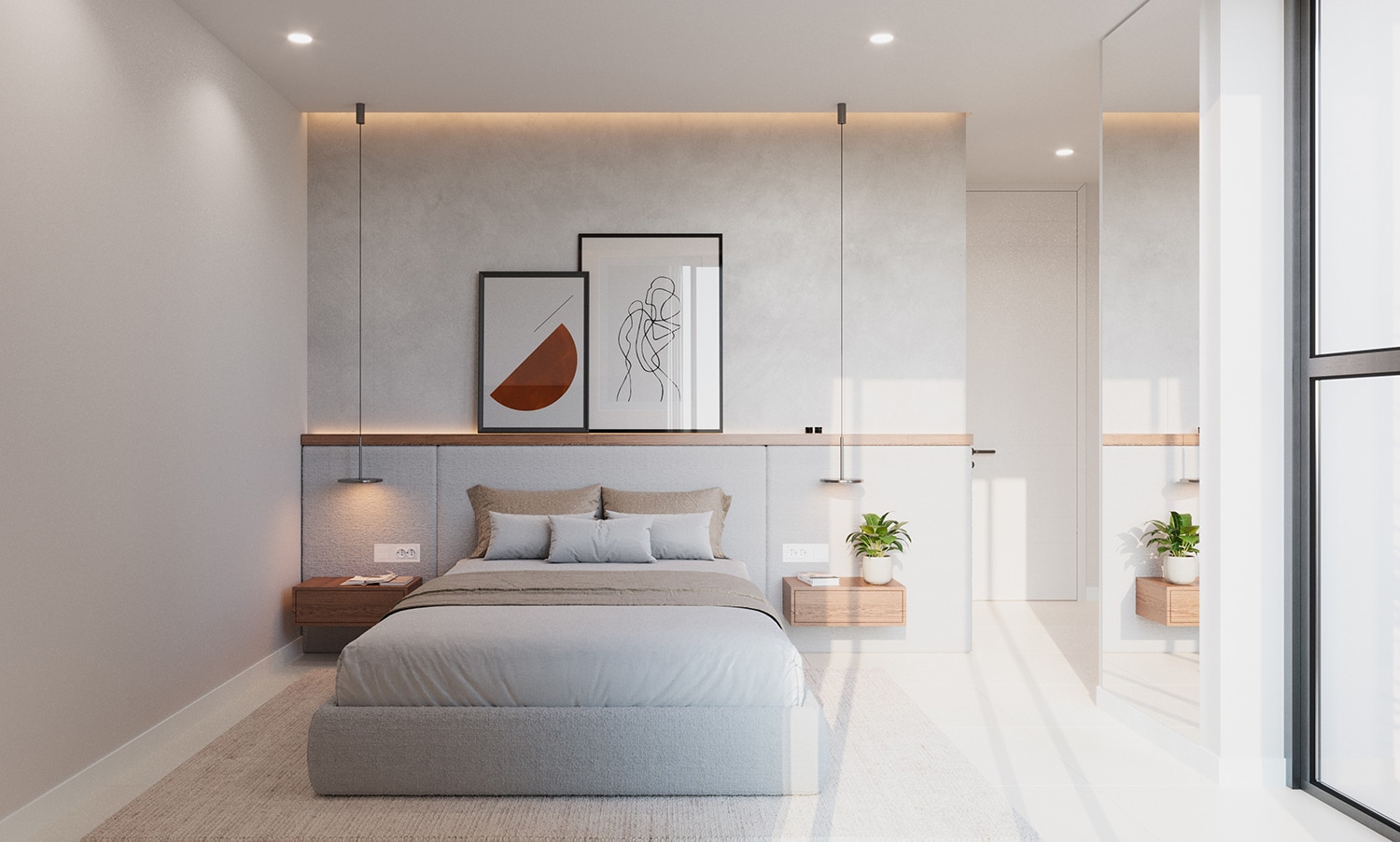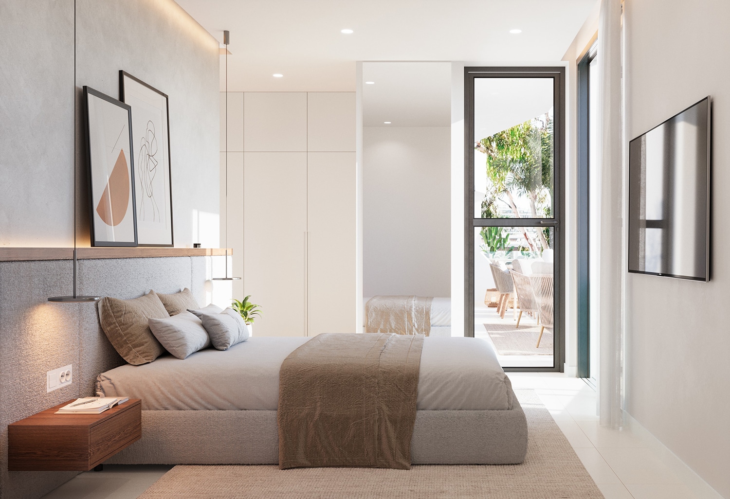 El dormitorio principal, cálido y luminoso, ofrece privacidad y confort, evoca un ambiente de spa de lujo.